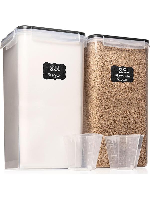 Our extra-large 8.5L Plastic Food Storage Containers - Set of 2, is designed to revolutionize your kitchen organization. It is made from BPA-free ABS and SAN plastic and offers a safe and food-grade solution for storing kitchen-related items. Their clear design ensures easy identification of contents, while the set includes 2 matching measuring cups, perfect for precise portioning of ingredients like coffee, grains, flour, sugar, and pet food. These containers boast ample space to accommodate a variety of pantry staples.